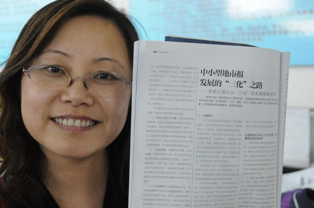 魏彤欣和她在《中國記者》上發表的論文。阜新市傳媒中心供圖