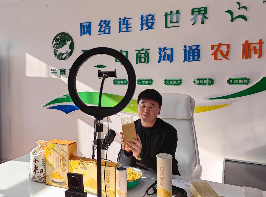 志丹縣杏河鎮牛寨村黨支部書記張志亮正通過電商售賣小米。新華社記者孫正好 攝