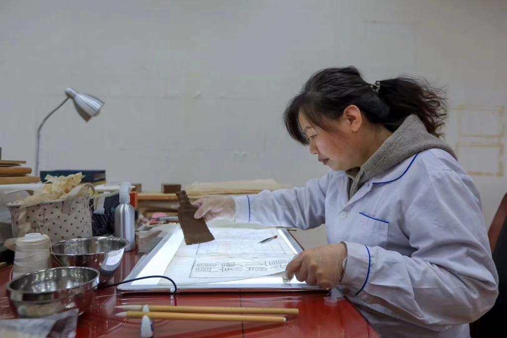 最近,王斌正帶著去年剛加入遼寧省圖書館修復團隊的“95后”修復師李明一在修復一本《大唐紀功頌》。王斌還經常前往魯迅美術學院,為文物保護與修復專業的學生授課?!爸挥形嗄贻p人了解古籍、愛上古籍,才能讓古老的中國文化充滿生命力?!蓖醣笳f。