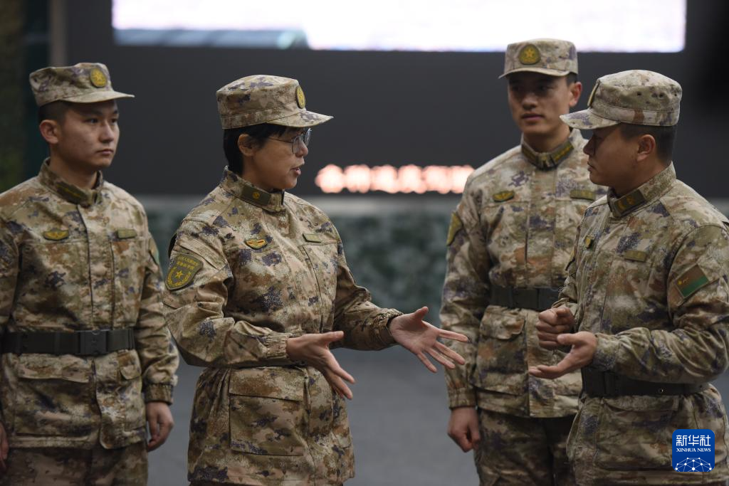 軍事科學院軍事科學信息研究中心副主任、研究員白曉穎(左二)帶隊到陸軍某部調研(資料照片)。新華社發