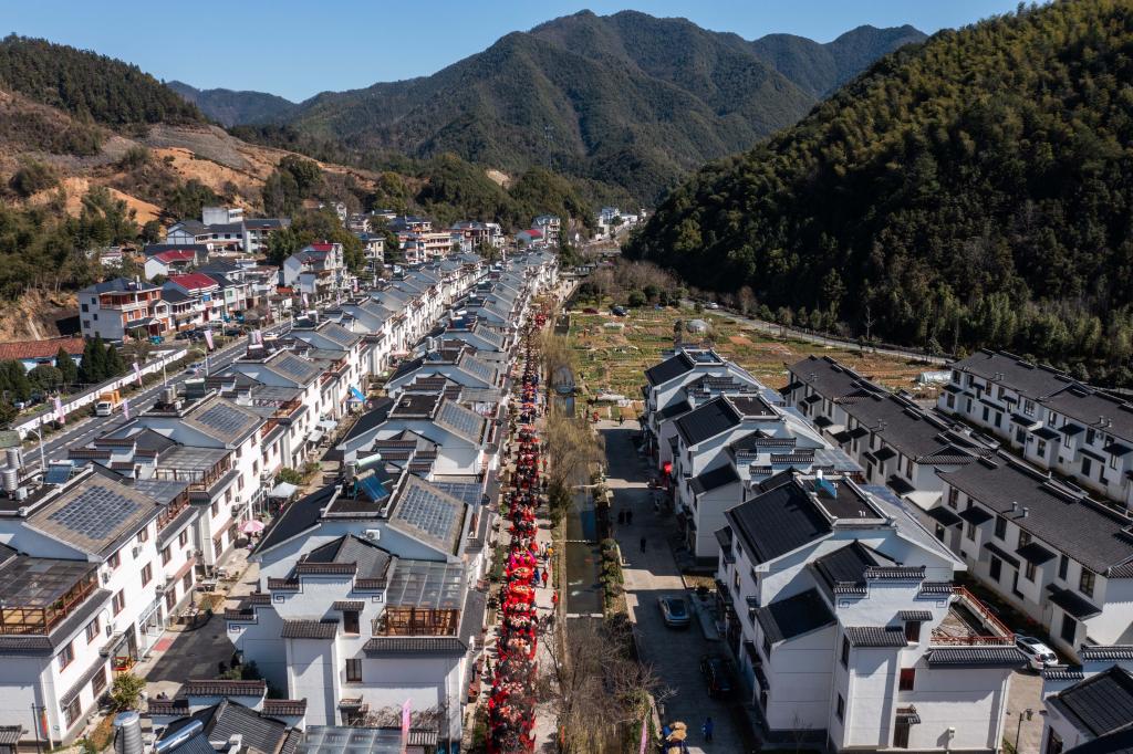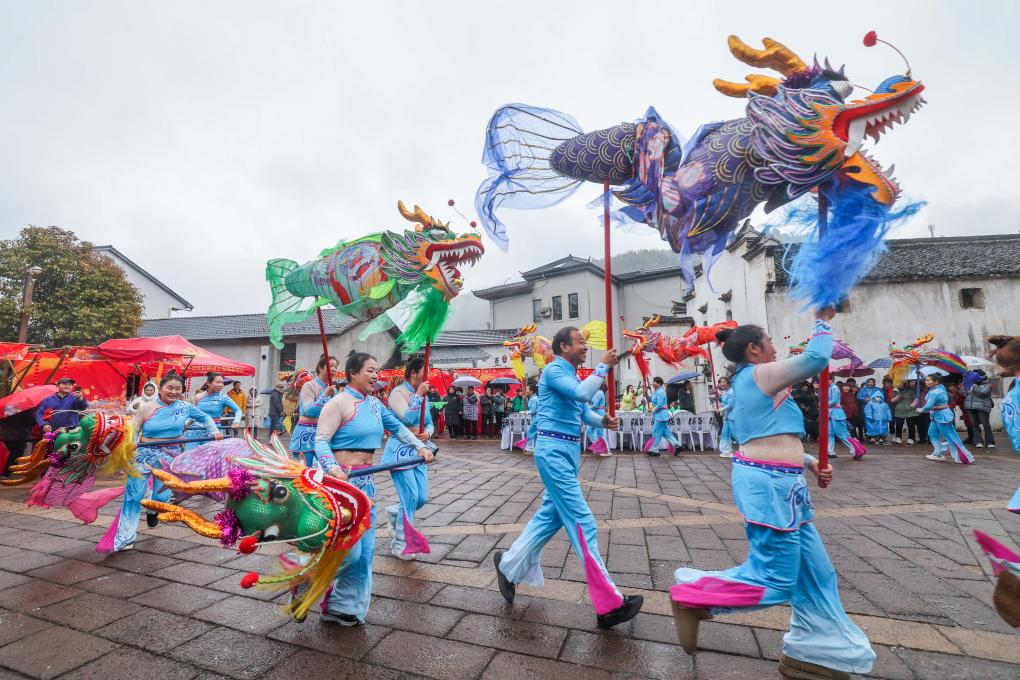 ↑ 2024年1月20日,在太湖源鎮紅葉指南村落景區舉行的傳統鰲魚燈表演。