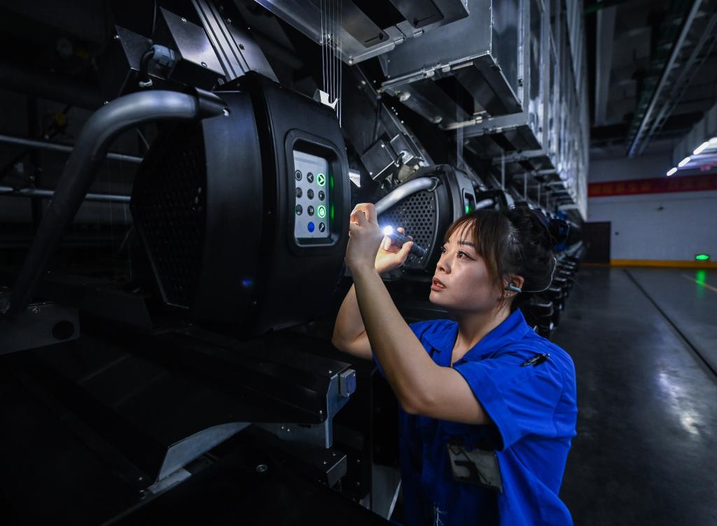 ↑ 2023年2月2日,位于桐鄉市洲泉鎮工業園區的桐昆集團浙江恒超化纖有限公司的車間內,工人正在自動化生產線上巡查。春節期間,該公司的生產設備全負荷運轉,1000多名職工堅守在生產一線,全力沖刺一季度“開門紅”。