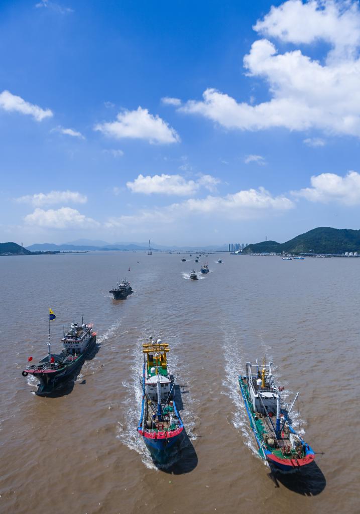 ↑ 2023年8月6日,漁船從舟山普陀沈家門漁港駛出,前往東海漁場。