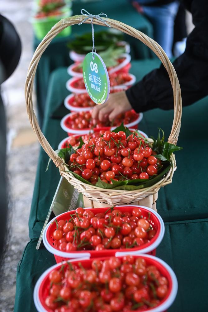 ↑ 2023年4月23日在櫻桃采摘節活動現場拍攝的櫻桃。