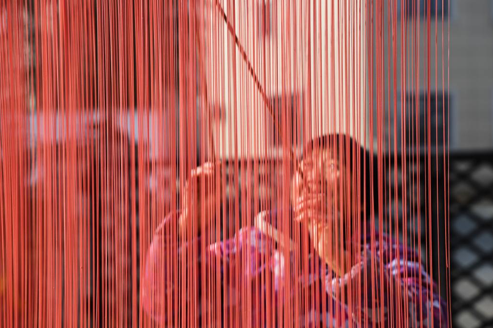 ↑ 2024年1月11日,68歲的三聯村村民邵萍英在院子里晾曬剛制作好的傳統索面,她有著30年制作索面的經驗。在浙江省杭州市臨安區湍口鎮,當地百姓制作傳統索面歷史悠久。索面制作包括和面、盤小條、醒面、拉面、曬面等多道工序,每年霜降至第二年開春期間是制作索面的“黃金季”。