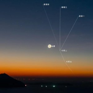 此次月掩心宿二時,月相為農歷臘月廿六的殘月,不至于過于明亮而影響對心宿二的肉眼觀測;特別是掩終時,心宿二再現的過程更容易觀測。而看不到掩星的地區,在凌晨的東南方低空可以看到一彎殘月與微紅的心宿二近距離相依相伴的場景。