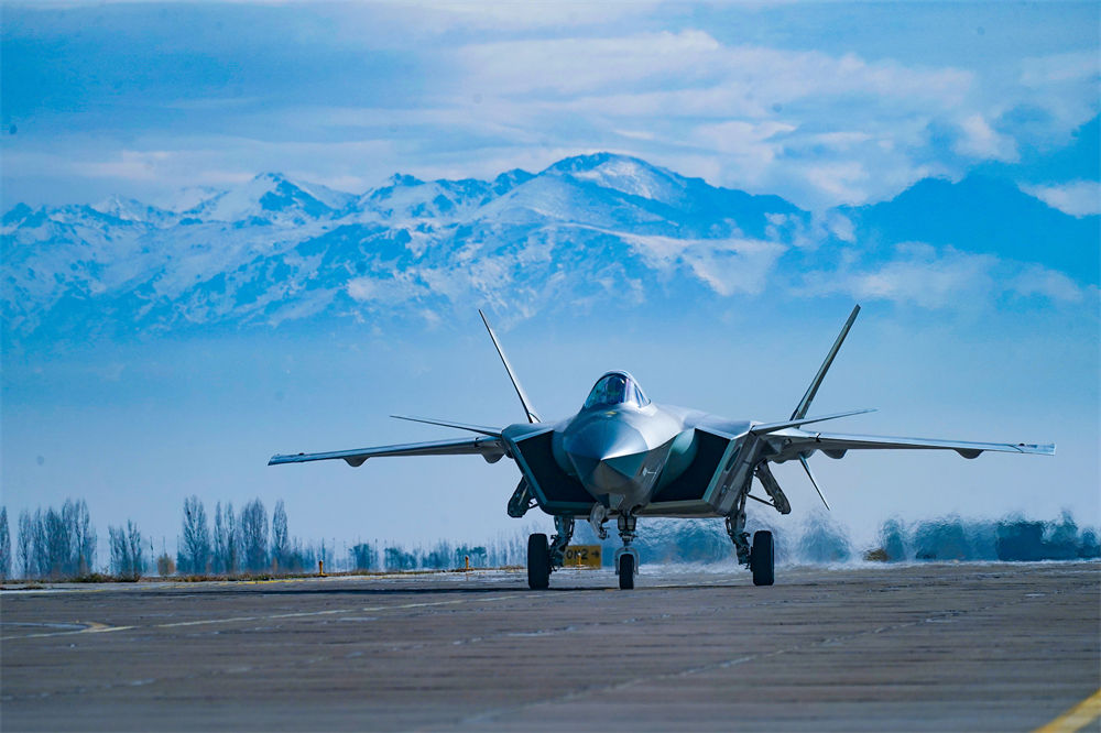 空軍航空兵某旅飛行一大隊飛行員駕駛殲-20戰機在陌生機場進行飛行訓練(2023年11月3日攝)。新華社發(劉威鵬 攝)