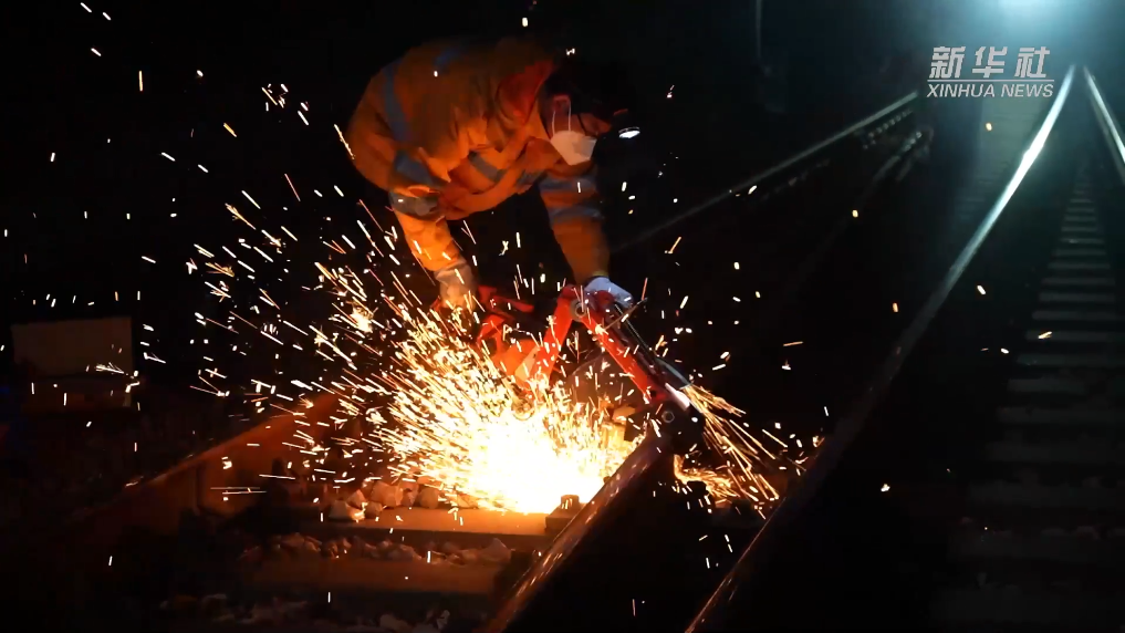 凌晨,最后一班列車駛出后,杭州東站的高鐵線路上呈現出另一種“熱鬧非凡”:檢測、切割、更換、焊接……為了春運的安全、穩定,杭州工務段杭州東高鐵線路工區工長劉豹和同事們逐一檢修著東站的每一米線路鋼軌。