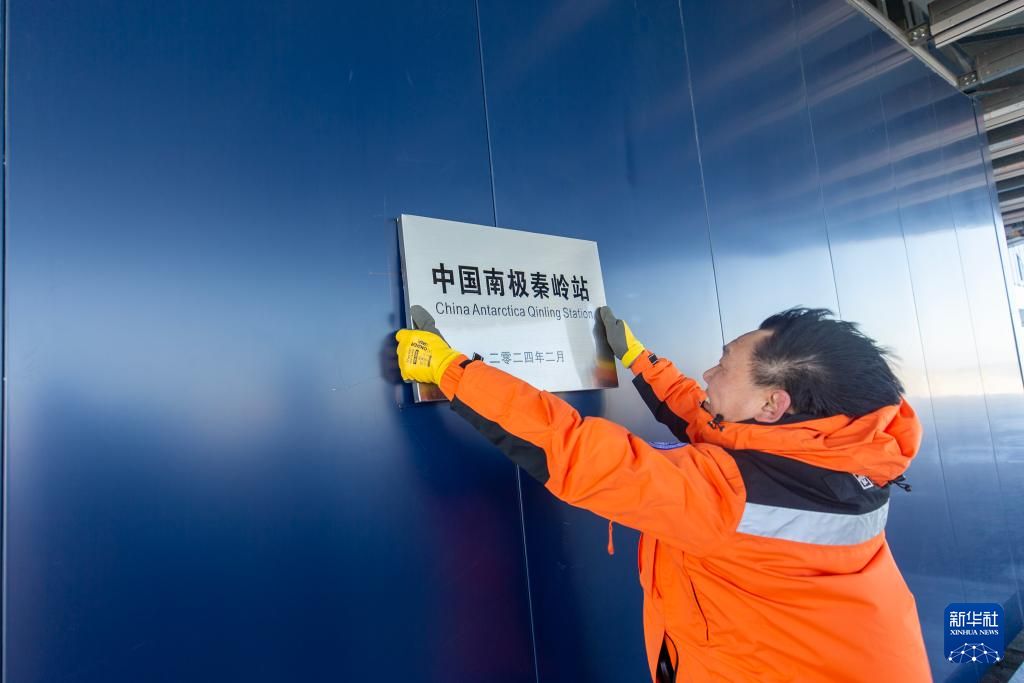 2月7日,自然資源部總規劃師吳海洋為中國南極秦嶺站掛牌。新華社記者 周圓 攝