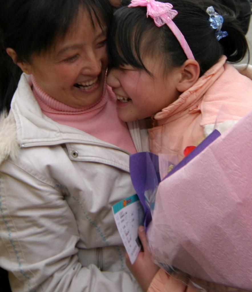 2008年1月24日,一對重慶籍母女在泉州晉江機場見面后相擁在一起。18名重慶籍在福建泉州務工人員的家屬乘飛機抵達泉州與親人團聚,在“第二故鄉”歡度春節。新華社發