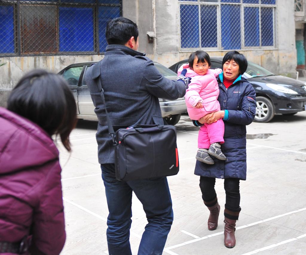 2011年1月24日,湖北恩施土家族苗族自治州鶴峰縣外出打工的田仕彬夫婦回到家中,女兒田雅菲和奶奶跑出來迎接到家的夫妻倆。新華社記者 程敏 攝