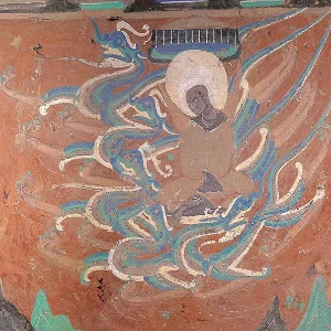 敦煌莫高窟第257窟的壁畫,畫中身姿矯健的五百大龍,馱著頭頂華蓋的佛弟子,從天空浩蕩飛來……