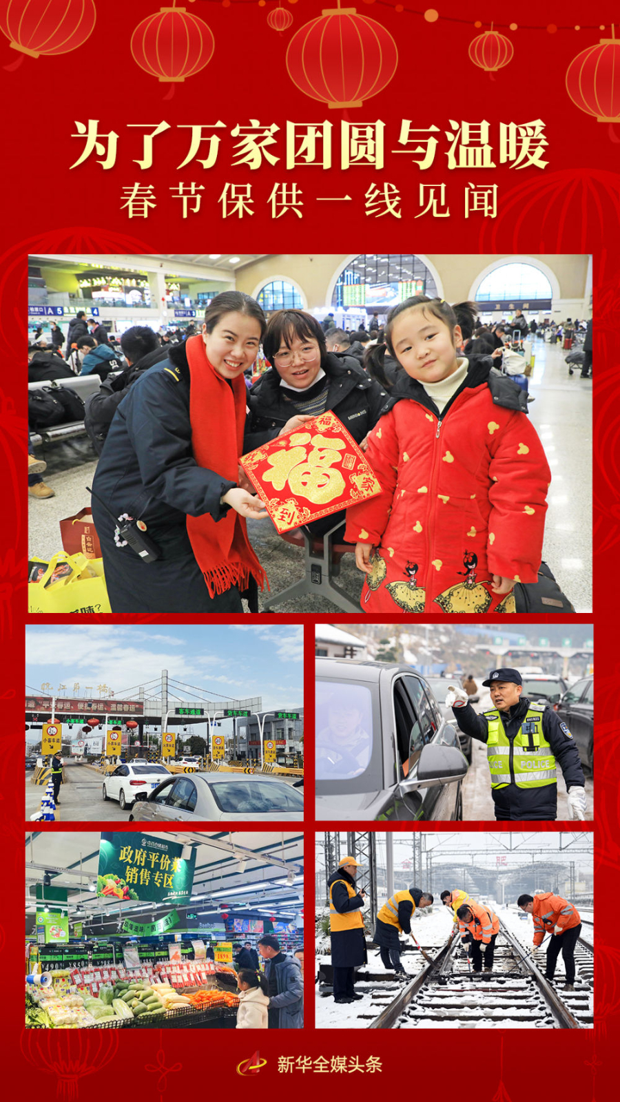 春節是中華民族最為隆重的節日。為了萬家的團圓與溫暖,各地各部門積極行動,許多干部、職工奮戰在保供第一線:有的千方百計讓群眾回家路更便捷,有的“24小時待命”確保用水、用氣、用電有保障,有的全力保障生活必需品供應充足……