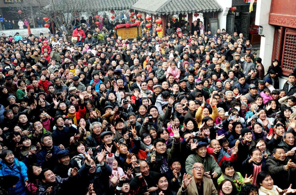 2011年2月7日是農歷正月初五,在江蘇蘇州山塘古街,“財神日”民俗表演活動吸引游客駐足觀看。