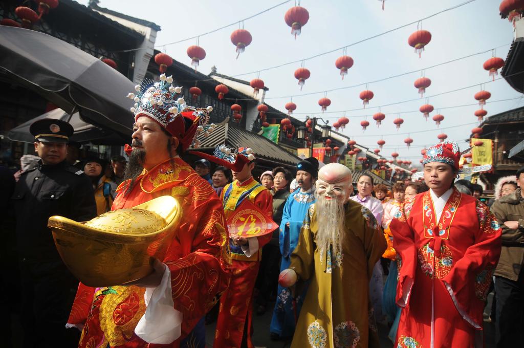 2010年2月18日是農歷正月初五,由民俗演員裝扮的“財神”及福、祿、壽、喜等“神仙”,在浙江杭州南宋御街行進巡演。