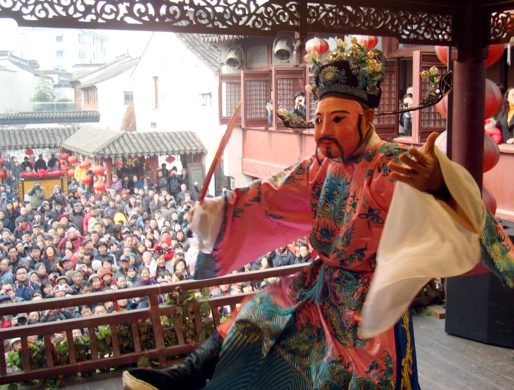2010年2月18日是農歷正月初五,由民俗演員裝扮的“財神”在蘇州山塘街古戲臺表演。