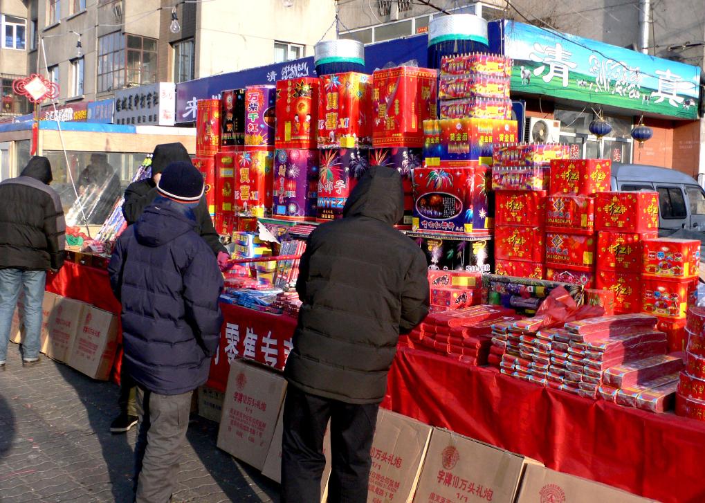 2006年2月2日是農歷正月初五,在東北有放爆竹、吃面的習俗。這是市民在哈爾濱的鞭炮銷售點購買鞭炮。