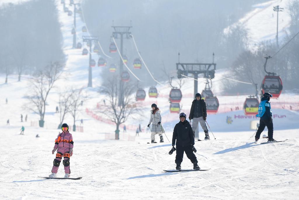 2月11日,滑雪愛好者在吉林市萬科松花湖度假區滑雪。新華社記者張楠 攝