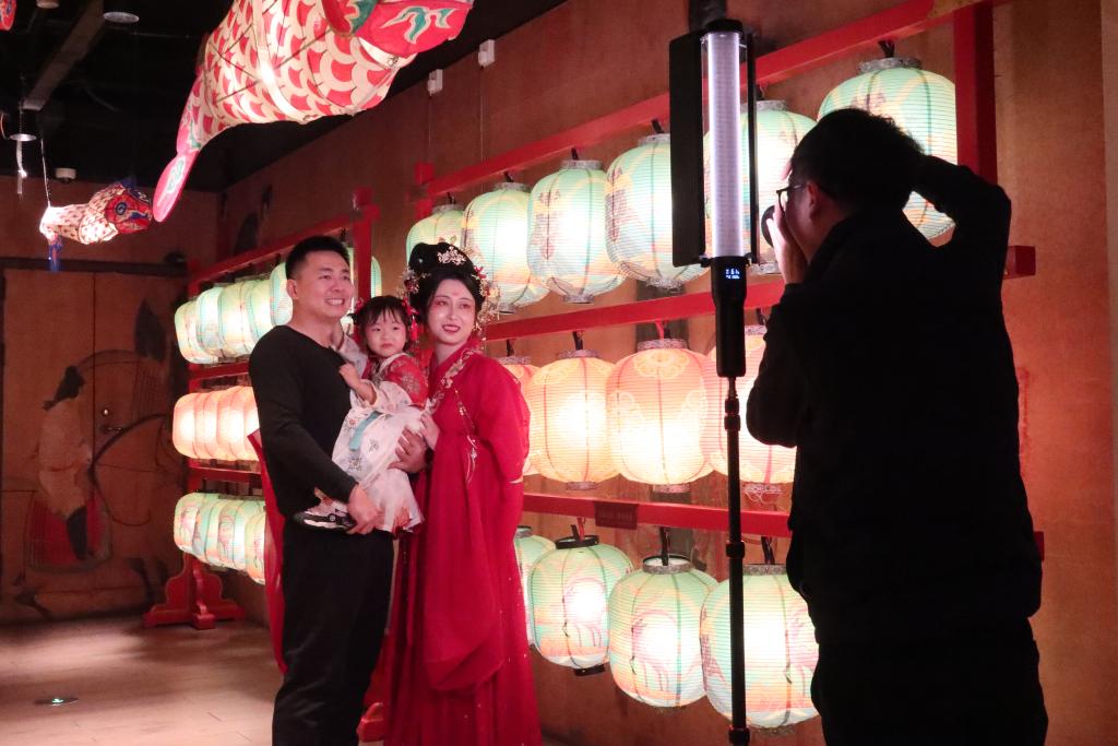 廣州市荔灣區永慶坊用25米長的龍主題裝置和300個新春花燈組成的“齊樂龍龍”藝術裝置,吸引了不少游客身著傳統服飾前來打卡。非遺廣繡、粵劇頭飾制作,以及西關民俗文化嘉年華等活動,帶給市民游客節日的歡笑。