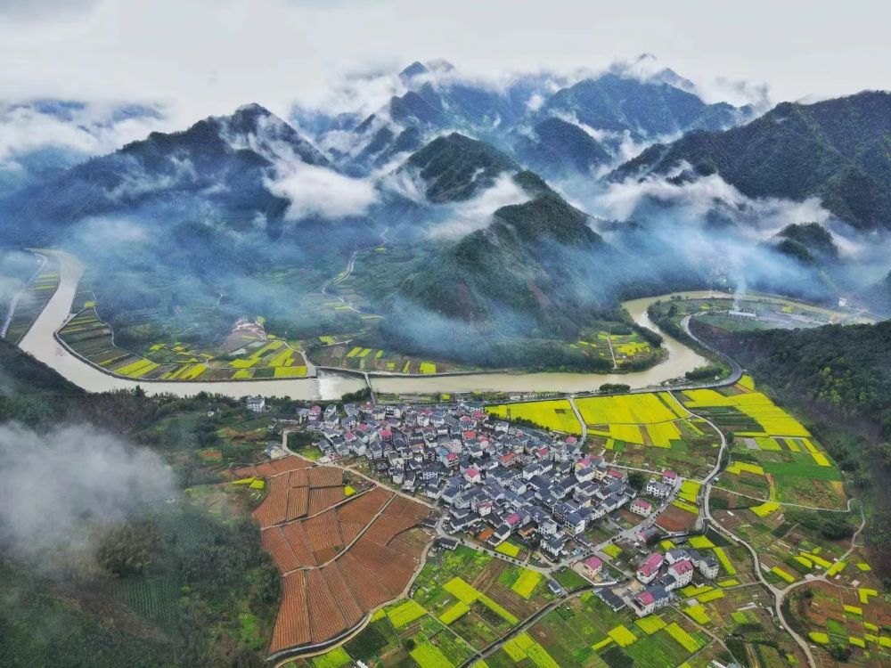 這是2022年3月25日拍攝的杭州市淳安縣臨岐鎮葉家畈村(無人機照片)。新華社發(王暨平 攝)