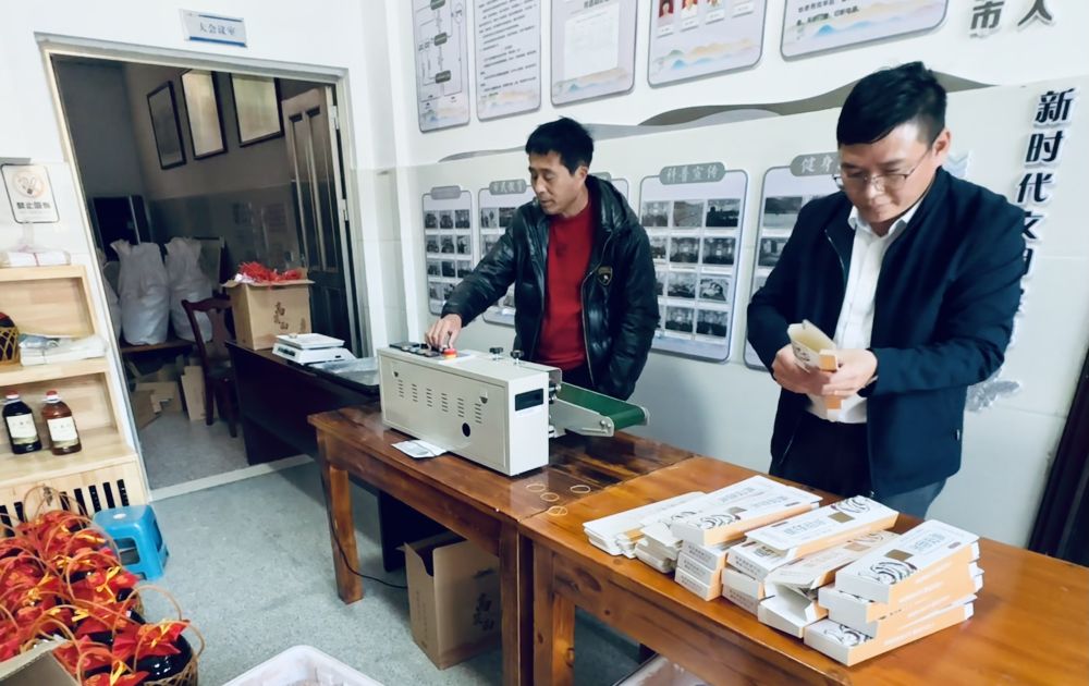 2023年12月7日,張凱(右)為村里生產的農產品進行包裝。新華社記者 許舜達 攝