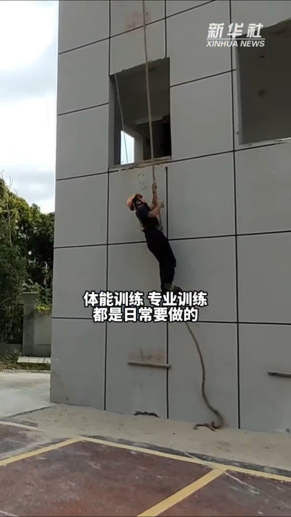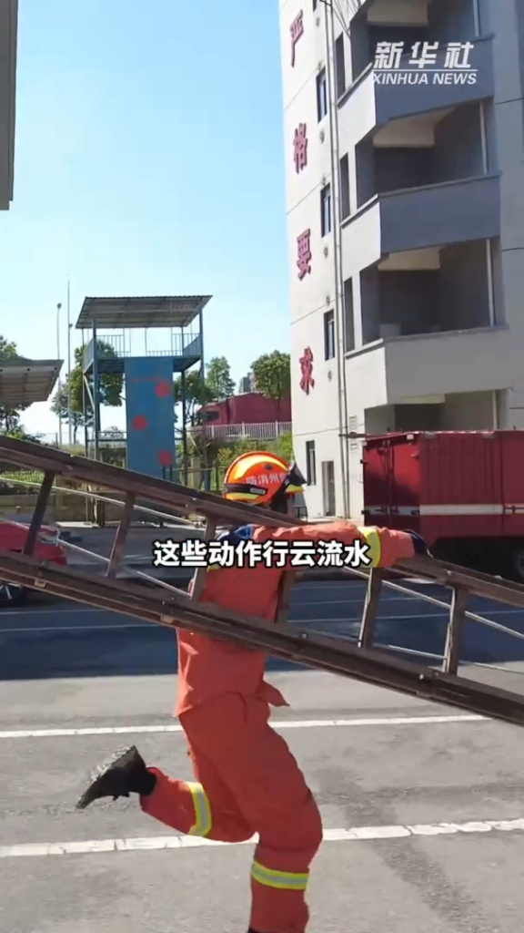 整理內務、體能訓練、專業訓練都是日常要做的,穿著40多斤重的裝備,身手十分的嫻熟。拋擲水帶、連接分水器、架設消防梯、水槍連接水帶這些動作行云流水,絲毫不拖沓。