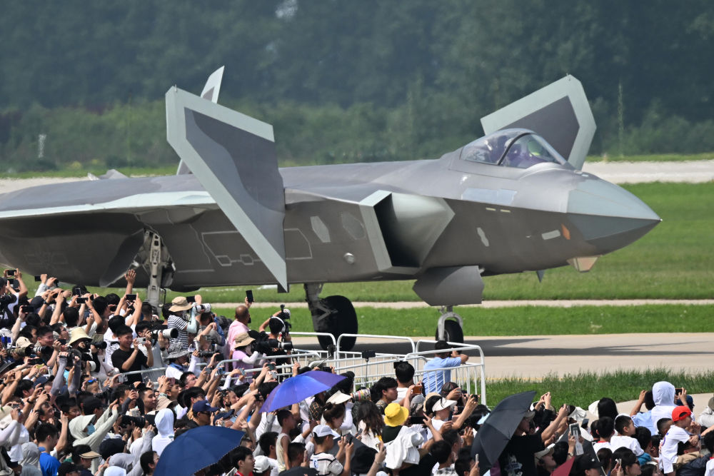 在空軍航空開放活動·長春航空展上,完成飛行展示的殲-20飛機從觀眾前滑向停機坪(2023年7月26日攝)。新華社發(余紅春 攝)