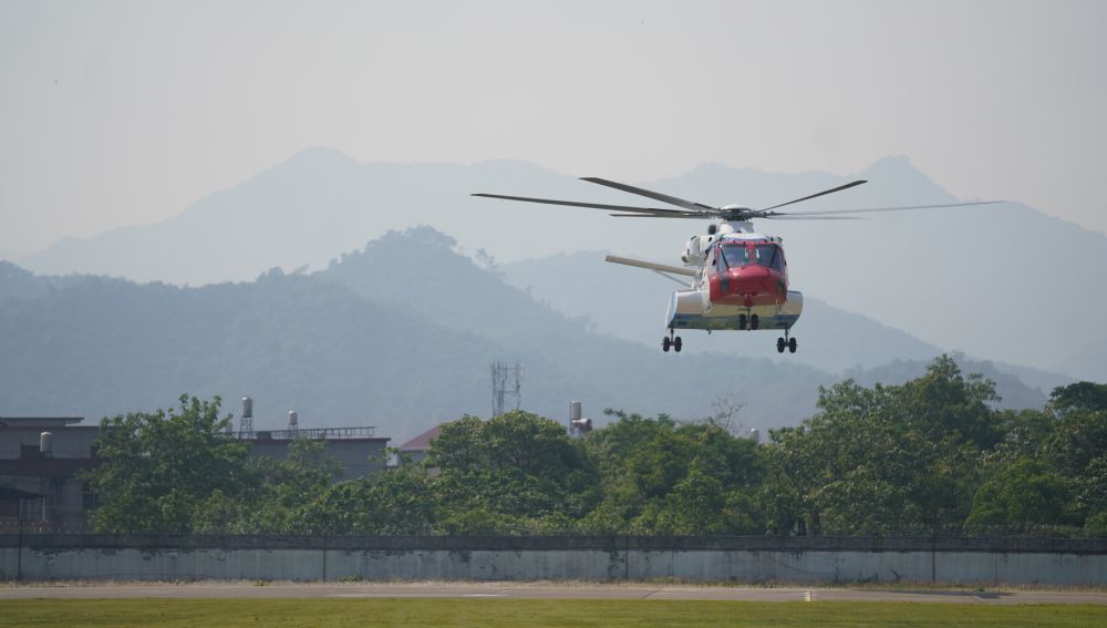 在江西景德鎮呂蒙機場,中國航空工業集團有限公司自主研制的大型多用途民用直升機“吉祥鳥”AC313A直升機首飛成功(2022年5月17日攝)。新華社記者 胡晨歡 攝