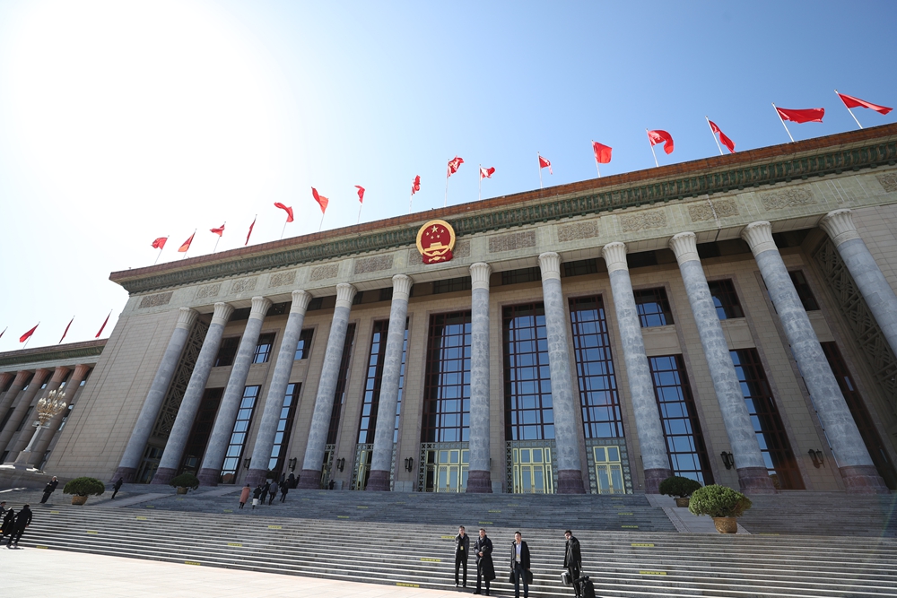 3月3日,全國政協十四屆二次會議新聞發布會在北京人民大會堂舉行,大會新聞發言人劉結一向中外媒體介紹本次大會有關情況并回答記者提問。圖為人民大會堂外景。新華網記者 王翰林 攝