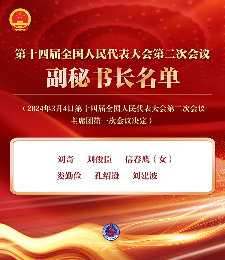 兩會受權發布丨第十四屆全國人民代表大會第二次會議副秘書長名單_2024全國兩會大型融媒體專題_新華網