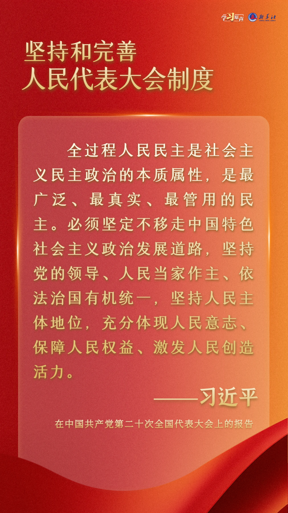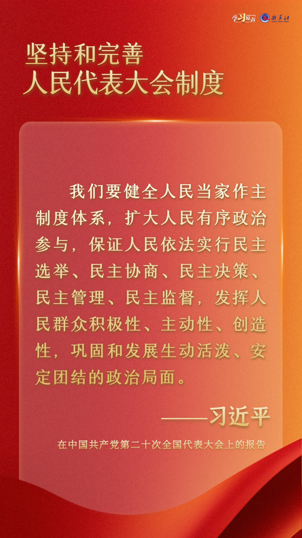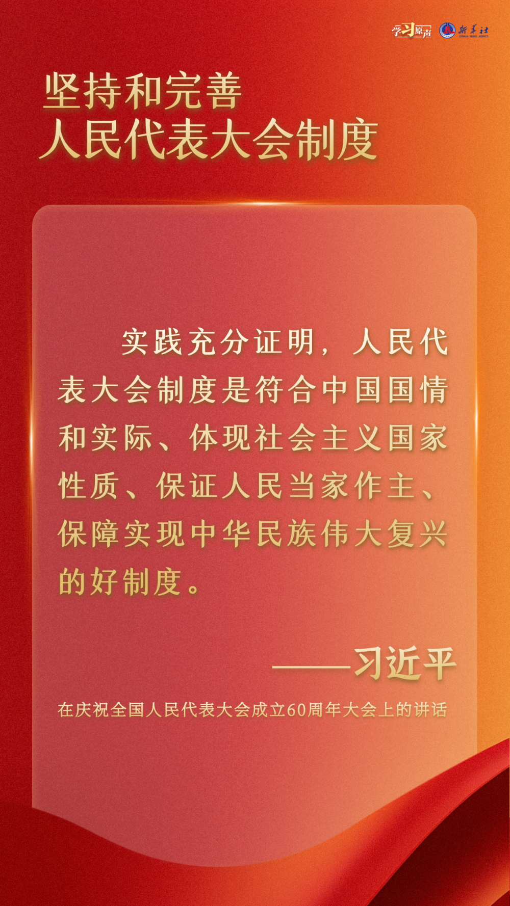 今年是全國人民代表大會成立70周年。新的歷史起點上,在以習近平同志為核心的黨中央堅強領導下,我們要堅持中國特色社會主義政治發展道路,堅持和完善人民代表大會制度,加強和改進新時代人大工作,不斷發展全過程人民民主,鞏固和發展生動活潑、安定團結的政治局面。