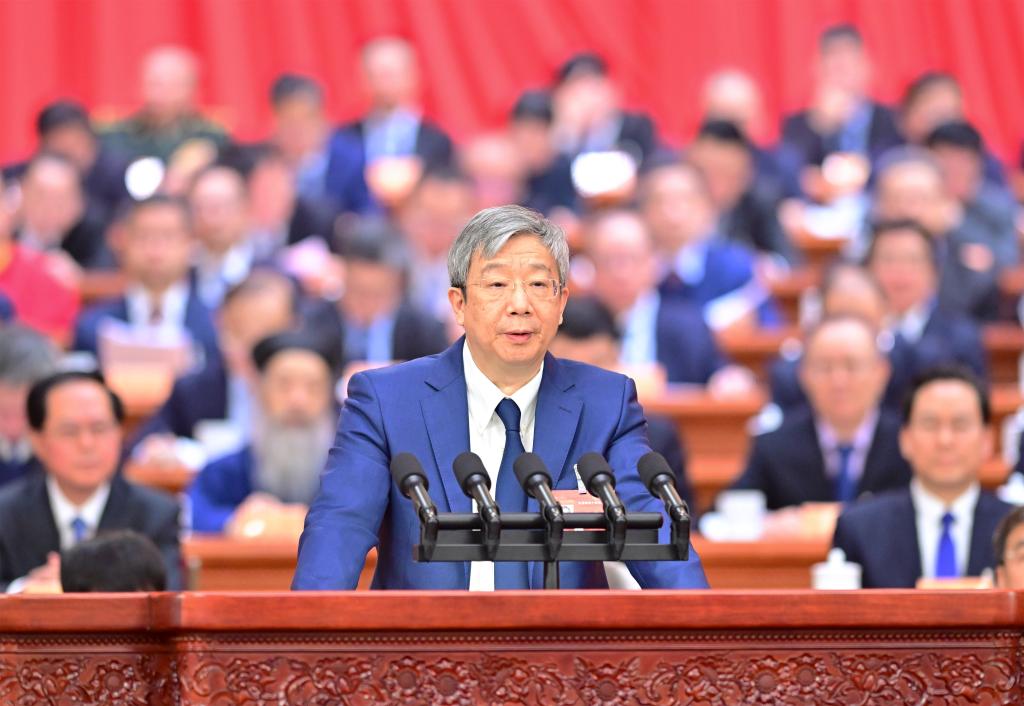 3月7日,全國政協十四屆二次會議在北京人民大會堂舉行第二次全體會議。這是易綱委員作大會發言。新華社記者 翟健嵐 攝