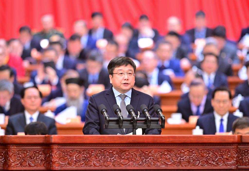 3月7日,全國政協十四屆二次會議在北京人民大會堂舉行第二次全體會議。這是陳群委員代表民盟中央作大會發言。新華社記者 翟健嵐 攝