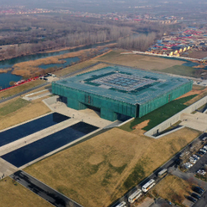 這是2024年2月26日拍攝的位于河南省安陽市的殷墟博物館新館(無人機照片)。新華社記者 李安 攝