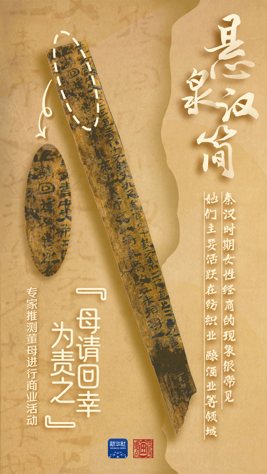 肖從禮說,秦漢時期女性經商的現象較為常見,她們主要活躍在紡織業、釀酒業等領域,為生計忙碌。在甘肅省河西走廊出土的其他簡冊中,還有優待年六十以上的婦女從事商業活動的規定。