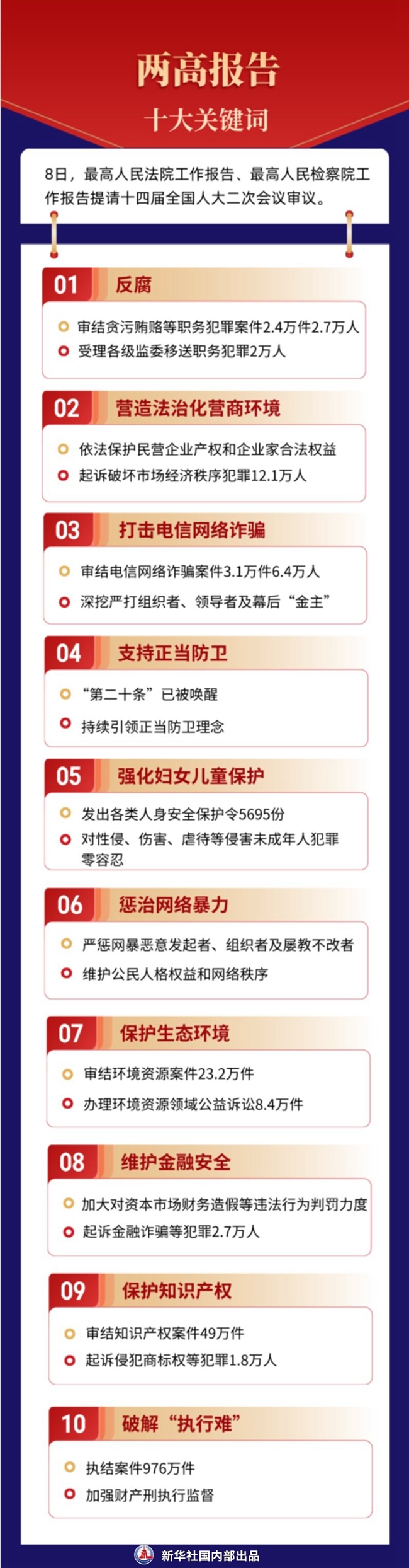 新華社北京3月8日電 題:十大關鍵詞解讀兩高報告
