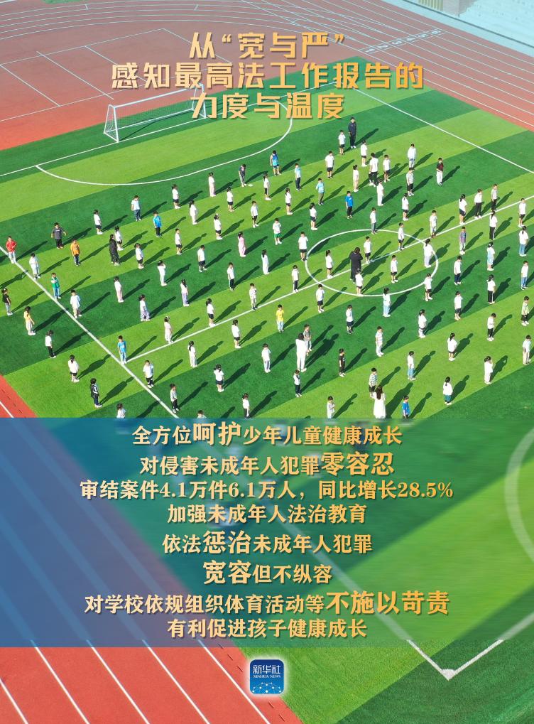 ——全方位呵護少年兒童健康成長。對侵害未成年人犯罪零容忍,審結案件4.1萬件6.1萬人,同比增長28.5%。