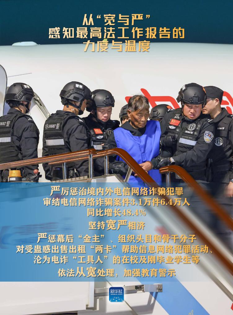 ——嚴厲懲治境內外電信網絡詐騙犯罪,審結電信網絡詐騙案件3.1萬件6.4萬人,同比增長48.4%。