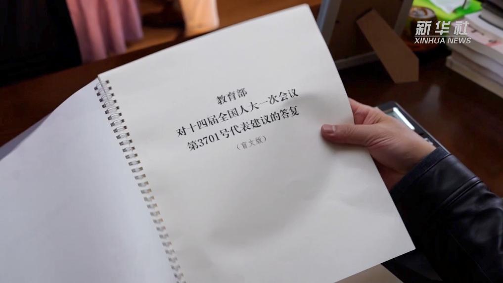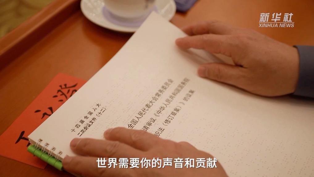 首位盲人全國人大代表王永澄,拿到一份特別的政府工作報告。他一邊認真聆聽報告,一邊用雙手仔細摩挲著這份更顯厚重的文件,難掩激動之情。