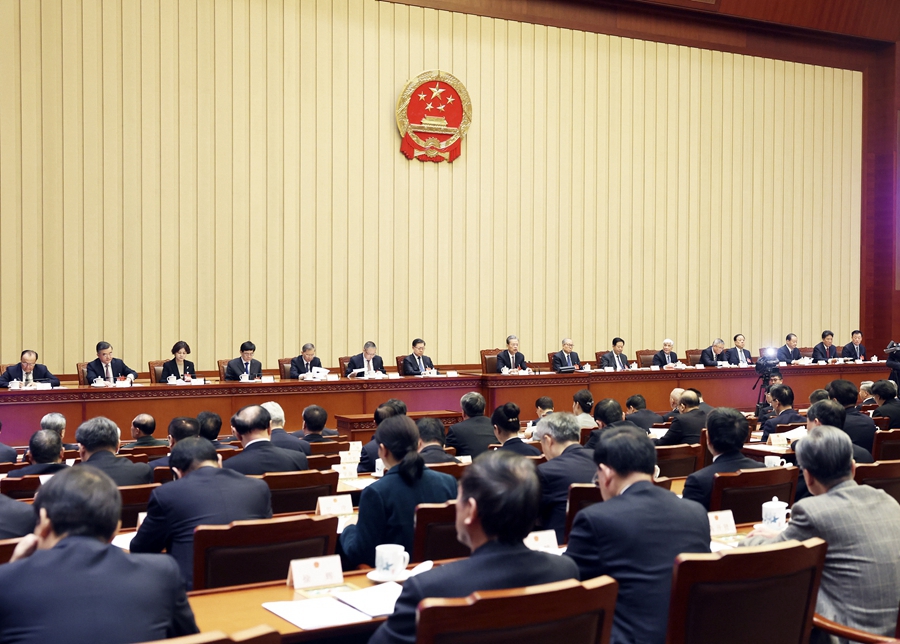 3月11日,十四屆全國人大二次會議主席團在北京人民大會堂舉行第四次會議。主席團常務主席趙樂際主持會議。 新華社記者 劉衛兵 攝