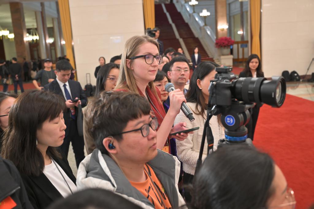 3月11日,第十四屆全國人民代表大會第二次會議第三場“部長通道”集中采訪活動在北京人民大會堂舉行。這是記者在現場提問。