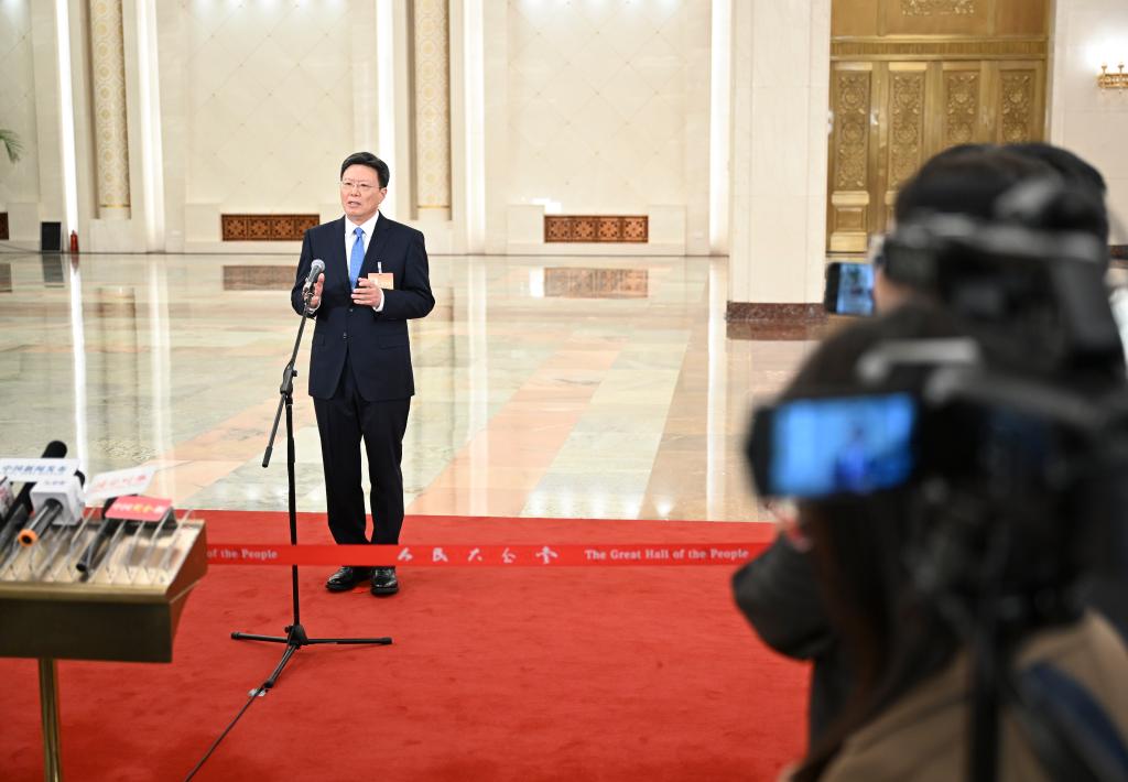 3月11日,第十四屆全國人民代表大會第二次會議第三場“部長通道”集中采訪活動在北京人民大會堂舉行。這是文化和旅游部部長孫業禮接受媒體采訪。
