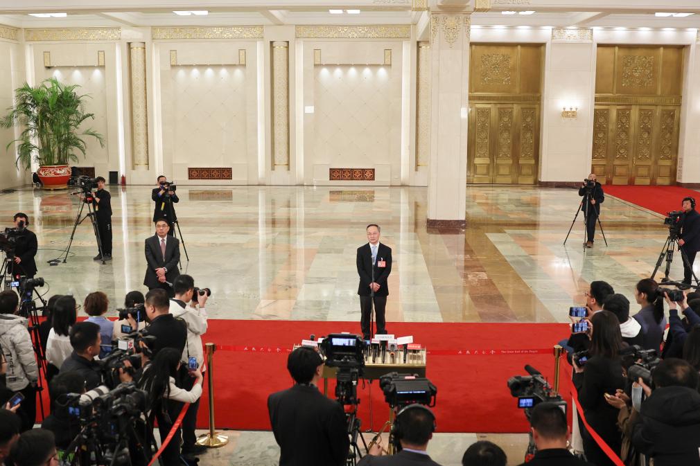 3月11日,第十四屆全國人民代表大會第二次會議第三場“部長通道”集中采訪活動在北京人民大會堂舉行。這是國家金融監督管理總局局長李云澤接受媒體采訪。