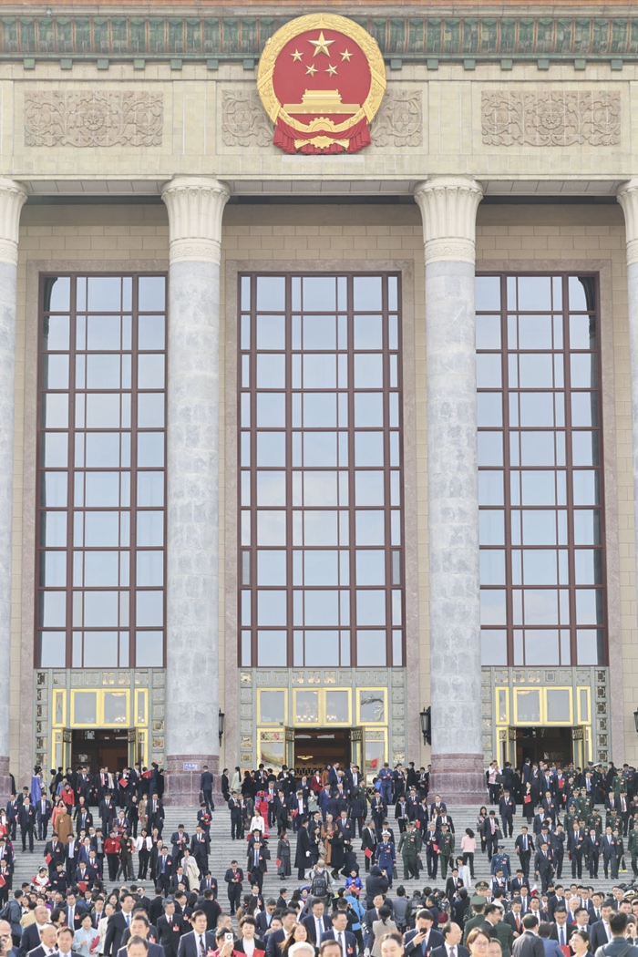 ↑3月10日,委員們走出人民大會堂。