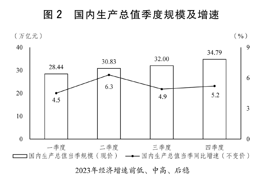 一是財政貨幣政策協同發力。延續優化完善稅費優惠政策,進一步加大對小微企業和個體工商戶等的支持力度。增發1萬億元國債,聚焦災后恢復重建和提升防災減災救災能力,優先支持建設需求迫切、投資效果明顯的項目。安排新增地方政府專項債券3.8萬億元,支持一批補短板、強弱項的基礎設施和公共服務項目建設。全年新增稅費優惠超過2.2萬億元。全國一般公共預算支出27.46萬億元,增長5.4%,民生、基層“三?!钡戎攸c領域支出得到較好保障。先后2次下調存款準備金率、2次下調公開市場操作和中期借貸便利(MLF)利率,保持流動性合理充裕,推動社會綜合融資成本下降,1年期和5年期貸款市場報價利率(LPR)分別下降0.2個和0.1個百分點,企業貸款利率下降0.29個百分點。充分運用結構性貨幣政策工具,加大對支農支小、科技創新、先進制造、綠色低碳等重點領域支持力度。人民幣匯率在合理均衡水平上保持基本穩定。2023年末,廣義貨幣供應量(M2)余額和社會融資規模存量分別增長9.7%和9.5%。全年人民幣貸款增加22.75萬億元,比上年多增1.31萬億元。