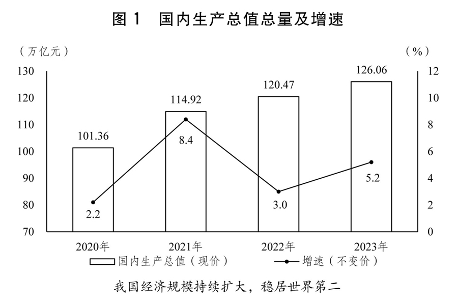 全年國內生產總值(GDP)126.06萬億元,增長5.2%;城鎮新增就業1244萬人,全國城鎮調查失業率平均值為5.2%;居民消費價格(CPI)上漲0.2%;國際收支保持基本平衡,年末外匯儲備規模為32379.77億美元。