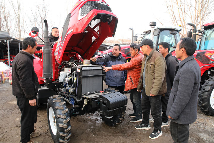 2024年2月27日,河南省開封市尉氏縣邢莊鄉的農民在尉氏農機市場上選購農機。新華社發(李新義 攝)
