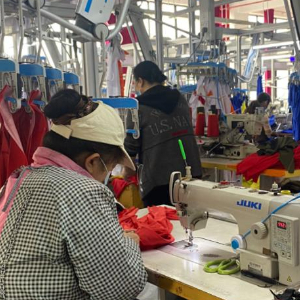 2023年11月22日,在益陽市湘銀之舞服飾有限公司的生產車間里,工人正在作業。新華社記者阮周圍 攝