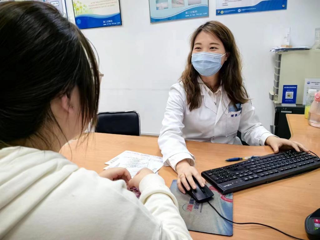浙江大學醫學院附屬第二醫院過敏(變態反應)科主治醫師楊波云(右一)為患者就診。(受訪者供圖)