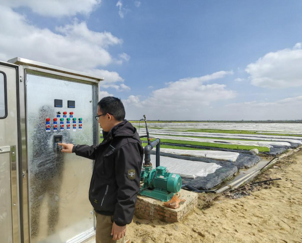 南昌智慧大田農業科技發展有限公司今年改造了80多畝應用智能灌溉系統的示范田?!笆痉短镌谠雀邩藴兽r田的現澆渠道內鋪設管道,利用低壓管道代替傳統水渠進行灌溉?!崩羁泼髡f,同時在田塊內放置傳感器實時監測水壓等數據,通過物聯網技術遠程控制管道閥門,進一步實現精準灌溉。